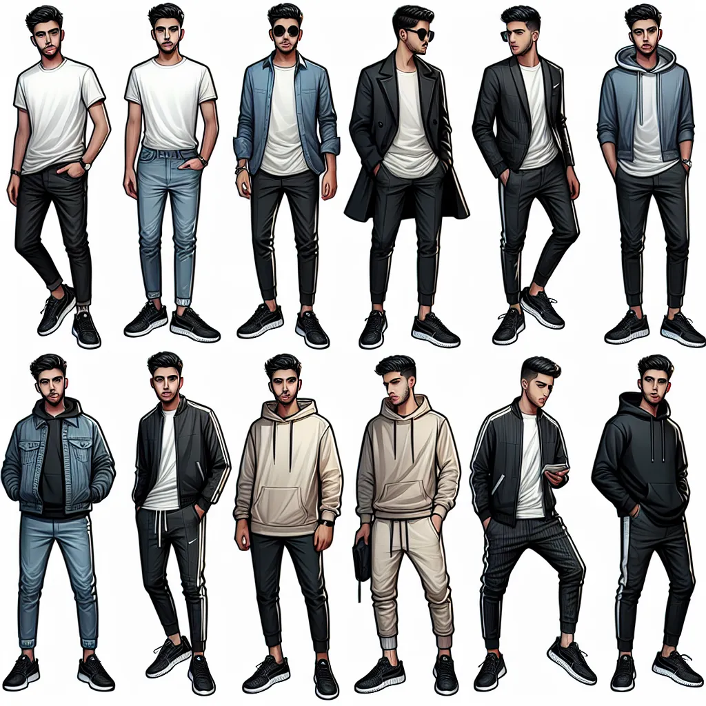 - Спортивный шик: Спортивные брюки, худи и черные кроссовки — идеальный выбор для активного дня.